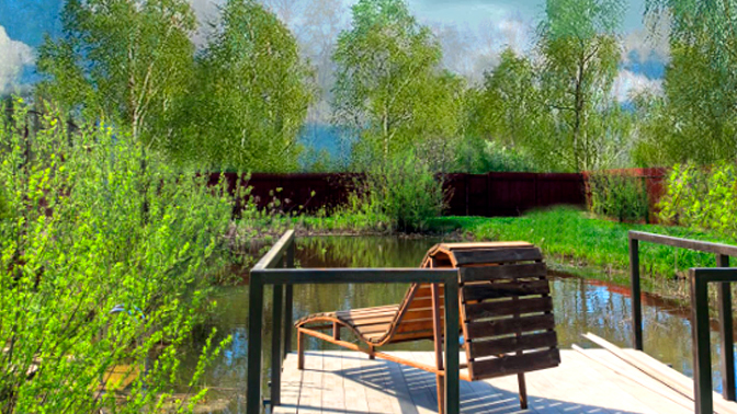 — собственный пруд, где можно искупаться после бани, позагорать на надувном матрасе или на берегу;
