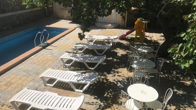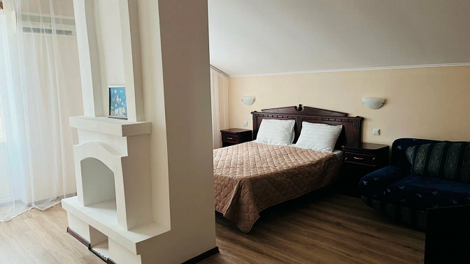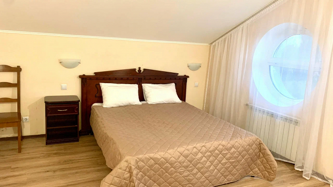 Здесь гостей ждут номера разных категорий, уютный зеленый дворик с бассейном и детской площадкой, сауна с купелью, а также мангальная зона. Отсюда можно быстро добраться до аквапарка, маяка, океанариума.