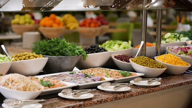 — для детей до 12 лет с родителями питание «Шведский стол» — 50% от стоимости, перечисленной выше.