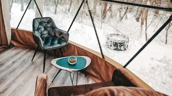 — Скидка 30% на проживание на 2 человек в течение 2 дней/1 ночи в доме из стекла королевский типи + купель Фурако + завтрак в выходные дни (19 880 руб. вместо 28 400 руб.)
