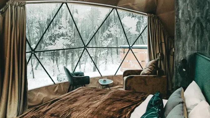 — Скидка 30% на проживание на 2 человек в течение 2 дней/1 ночи в геокуполе сьют + купель Фурако + завтрак в будние дни (16 380 руб. вместо 23 400 руб.)