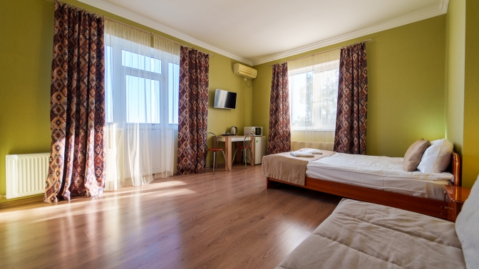 Проживание для 4 человек в семейном двухкомнатном номере с отдельным входом и кухней с завтраком: