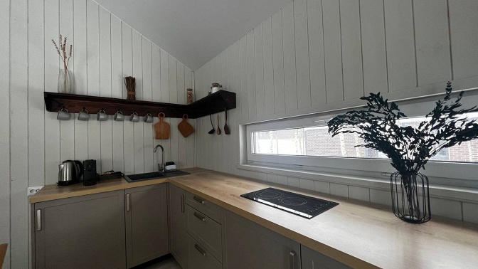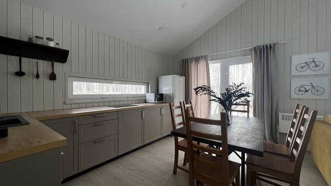 Дом площадью 65 кв. м. спроектирован для комфортного семейного проживания. Здесь есть все необходимое, включая бытовую технику, посуду, полотенца и гигиенические принадлежности.
