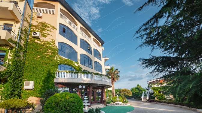 — Скидка 30% на отдых с оздоровлением в течение 5 дней/4 ночей в сентябре в номере категории студия с балконом (вид на море) для двоих с 3-разовым питанием (57 400 руб. вместо 82 000 руб.)