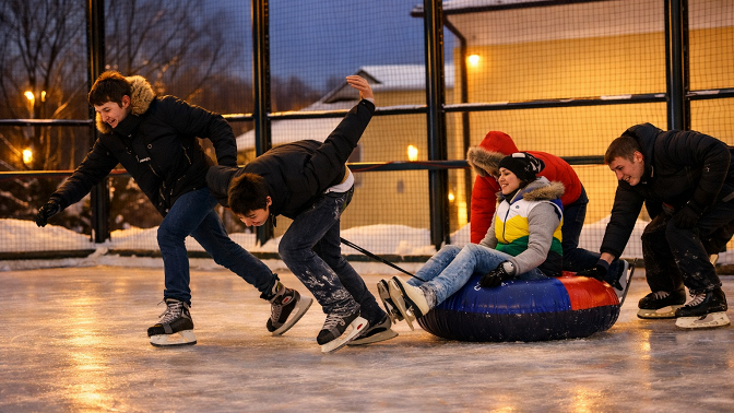 Каток — с 09:00 до 20:00, горячий чай — с 11:00 до 15:00.