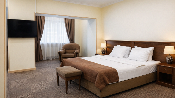 — Скидка 30% на отдых в течение 3 дней/2 ночей для двоих в номере категории однокомнатный люкс в будние дни в период с 01.02.2026 по 19.02.2026 (24 500 руб. вместо 35 000 руб.)