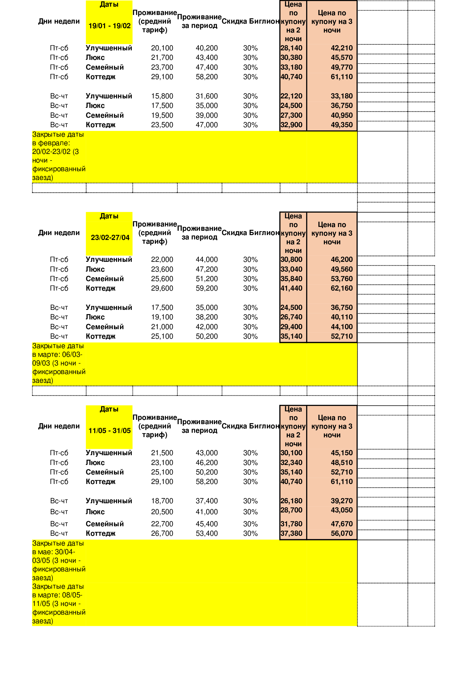 — заезд по акции с 20.02.2026 по 23.02.2026, с 06.03.2026 по 09.03.2026, с 30.04.2026 по 03.05.2026 и с 08.05.2026 по 11.05.2026 невозможен.