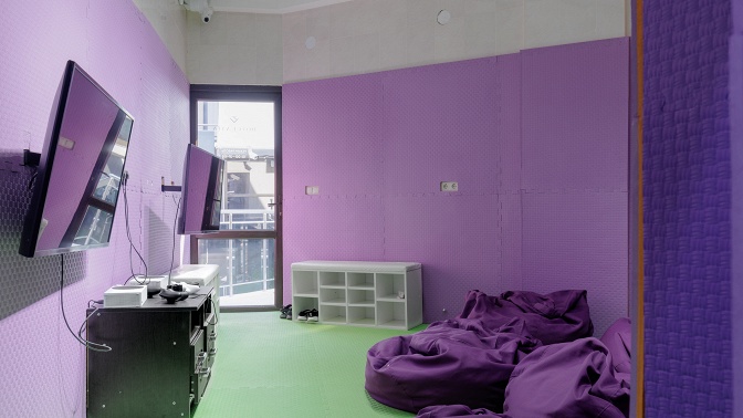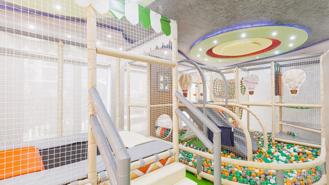 — большой лабиринт с горками, батуты, сухой бассейн, интерактивная зона, конструкторы, зона для малышей с бизибордами, PS5 и Xbox;