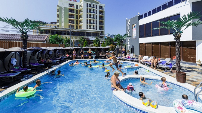 Отель Dolce Vita находится в 10 минутах ходьбы от благоустроенного пляжа. На территории заведения есть кафе, беседка и автомобильная парковка. В распоряжении гостей бассейн, оснащенный подогревом, гидромассажем, водопадом, гейзером и разноцветной ночной подсветкой. Рядом с бассейном есть лежаки. На крыше гостиницы расположена просторная терраса, с которой открывается панорамный вид на окрестности. К услугам маленьких постояльцев детская игровая площадка с батутом.