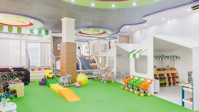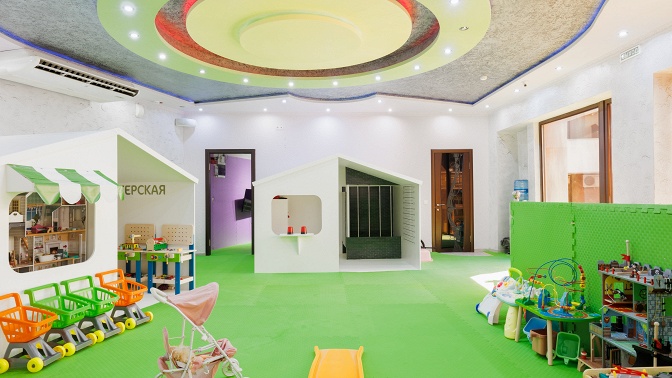 — большой развлекательный детский центр (150 кв. м) с тематическими домиками: больница, полиция, салон красоты, кафе, мастерская, магазин;