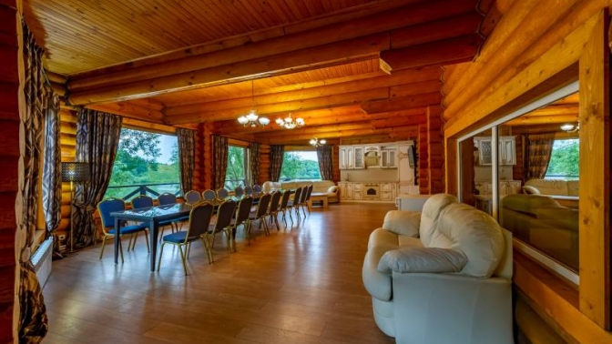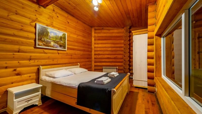 В каждом экодоме из бруса есть 2 отдельных входа, комфортабельные спальни, большая гостиная, ванная комната с душевой кабиной. Также работает Wi-Fi.