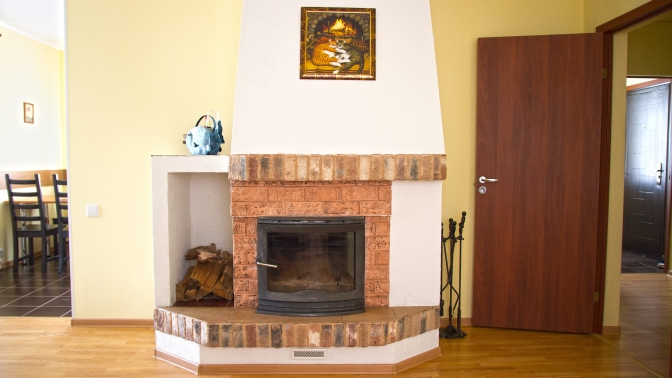 — уютная гостиная (25 кв. м) с видовым камином на дровах, мягким диваном, плазменной панелью;