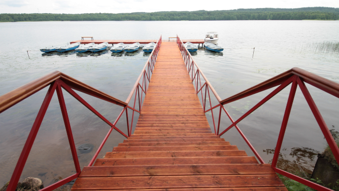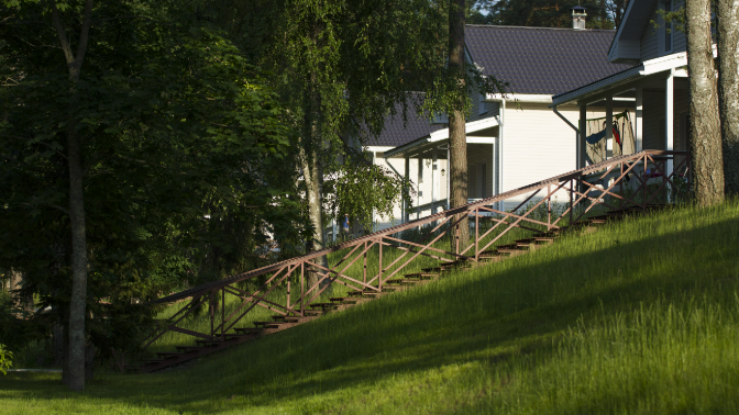На территории находится 8 коттеджей площадью 131 кв. м. Это подходящий вариант для отдыха с семьей, друзьями или коллегами. Можно будет посетить сауну, пожарить шашлыки, полюбоваться с террасы прекрасным видом на водную гладь.