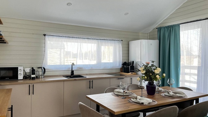 Дом площадью 65 кв. м. спроектирован для комфортного семейного проживания. Здесь есть все необходимое, включая бытовую технику, посуду, полотенца и гигиенические принадлежности.
