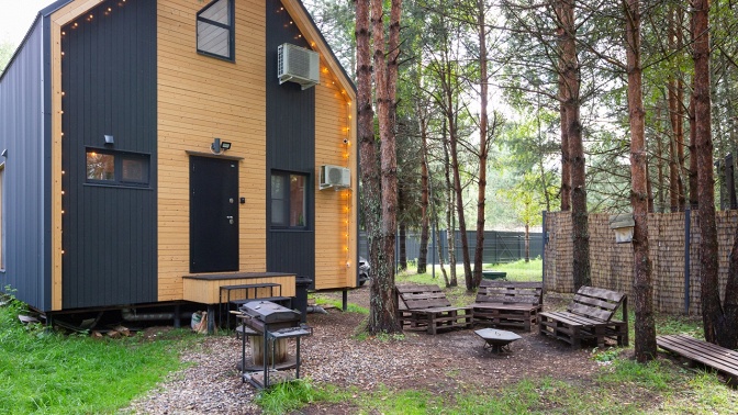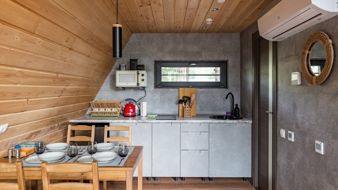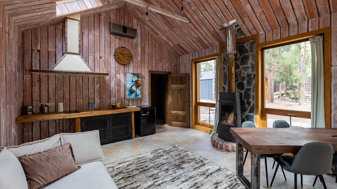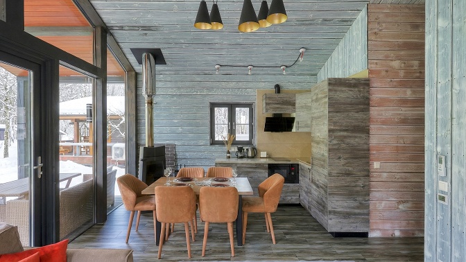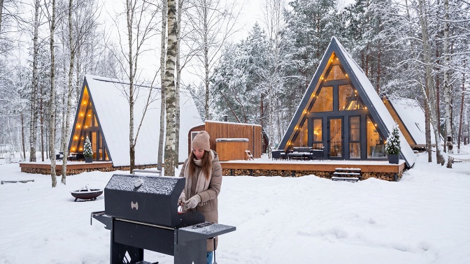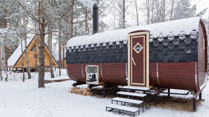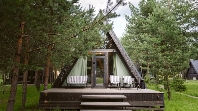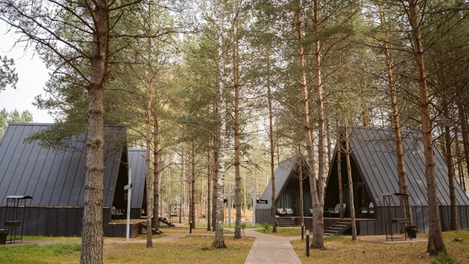 Вас ждут дизайнерские дома A-Frame и коттеджи в стиле BarnHouse. На территории всех домов есть бани и купели. Кроме того, здесь работает ресторан, где подают блюда европейской кухни в авторской интерпретации.