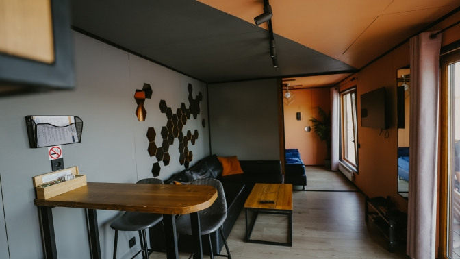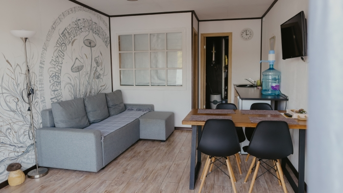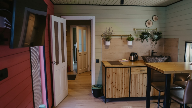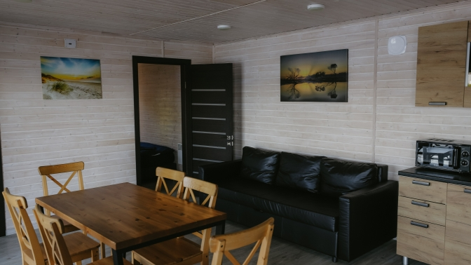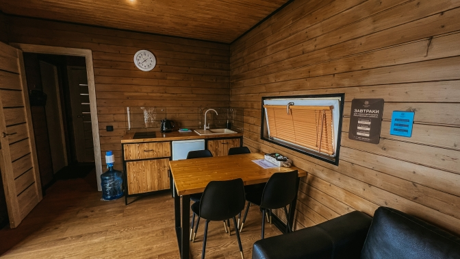 Для проживания гостей приготовлены обустроенные дома разных категорий, которые рассчитаны на проживание компании из 4–12 человек. В домах есть балконы, мини-кухни с микроволновой печью и холодильником, спутниковое телевидение, а также санузлы с ванной или душем, банными принадлежностями.