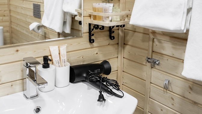 — феном, набором косметических принадлежностей и комплектом полотенец;