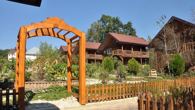 Экодеревня находится в уединенном уголке, в стороне от крупных дорог и больших городов. Столь удачное расположение позволяет гостям сменить обстановку, восстановить душевные и физические силы, совершать увлекательные пешеходные прогулки и любоваться красотой местной природы. На территории заведения оборудованы площадки для занятий спортом и отдыха на свежем воздухе, бассейн, а также организовано целое фермерское хозяйство для получения свежих и экологически чистых продуктов.