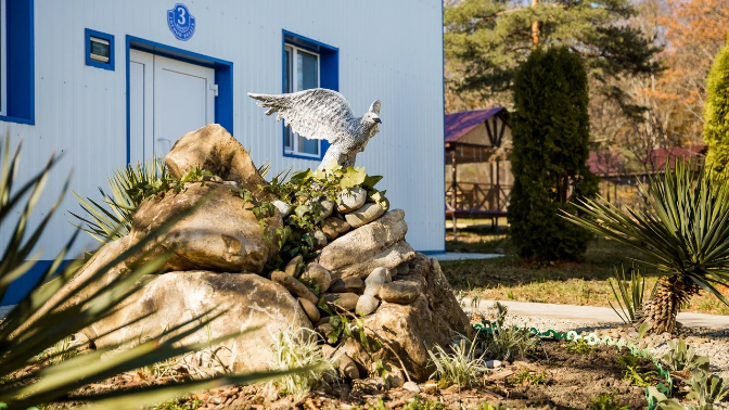 На территории есть баня, бассейн и спортивные площадки. Также работает Wi-Fi. Для размещения предусмотрены жилые корпуса с номерами разных категорий.