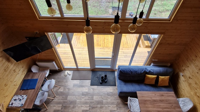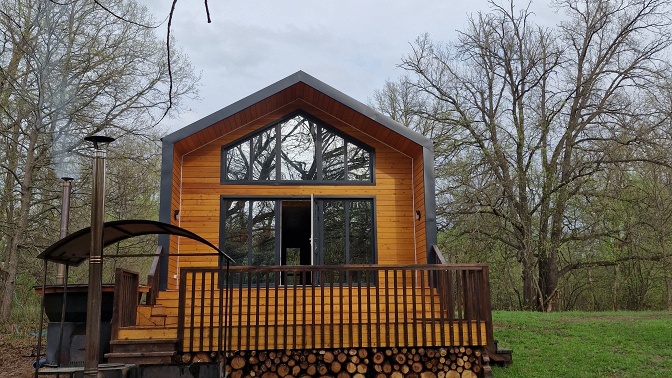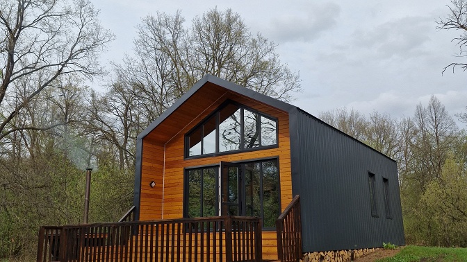 Современный дизайн и панорамные окна в пол создают ощущение единения с природой. В доме три спальни, просторная кухня-гостиная для совместных застолий и отдыха, санузел, телевизор и Wi-Fi. На террасе расположена зона для приготовления шашлыков.