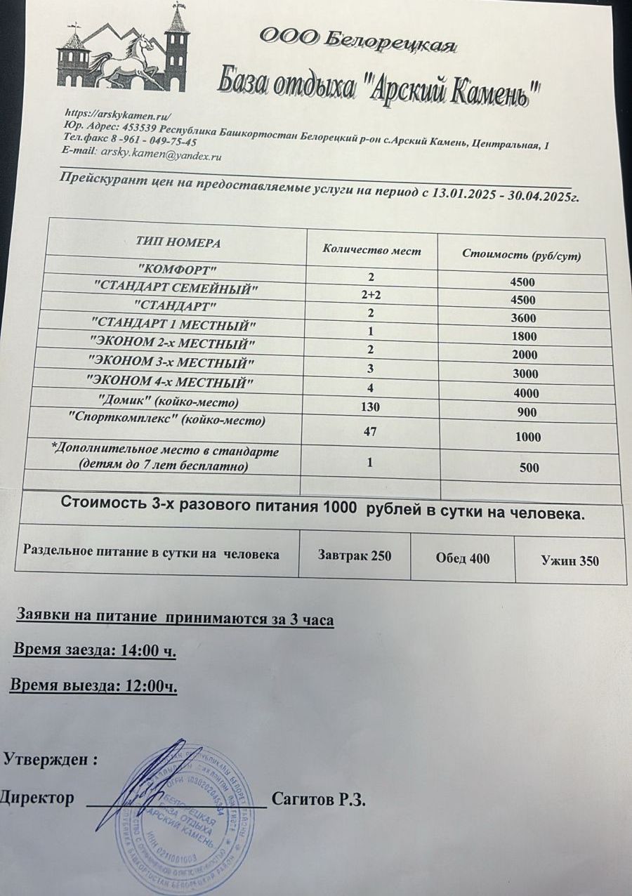 Дополнительные услуги, которые можно приобрести при необходимости: продление отдыха (дополнительное проживание) на неограниченное количество дней (при желании и наличии свободных номеров) — по прайсу базы отдыха.