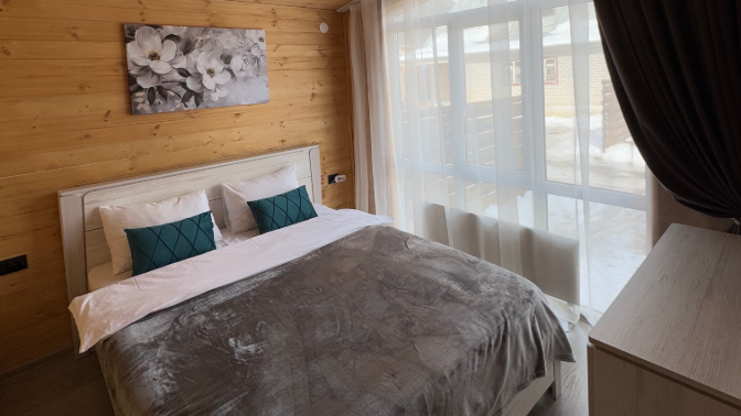 Домик расположен рядом с магазинами и пунктами проката. При этом гостей не будет беспокоить шум от центральной улицы. До склонов можно доехать за 10 минут.