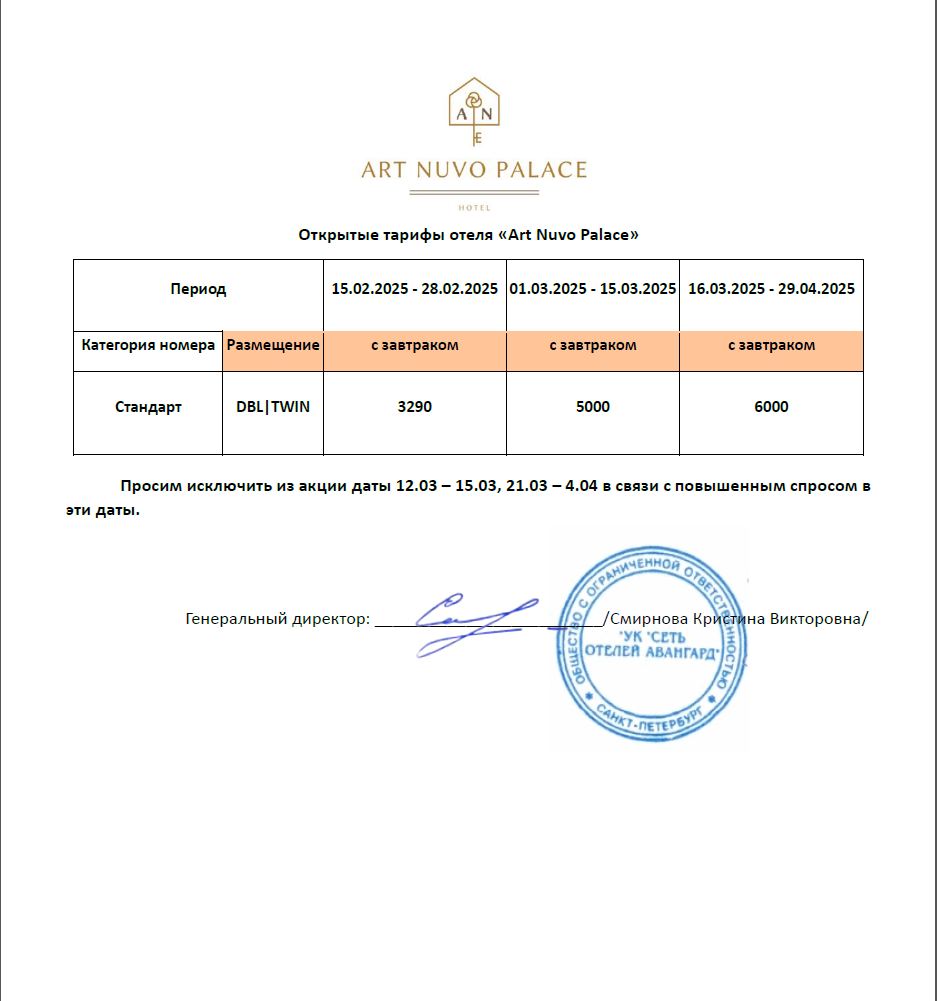 — перенести дату заезда или отменить бронирование возможно только с письменного согласия представителей отеля;
