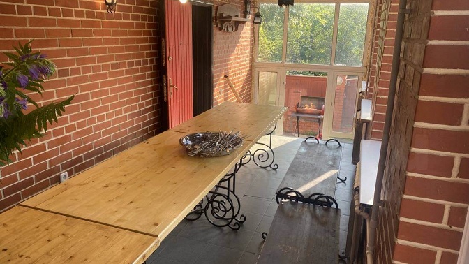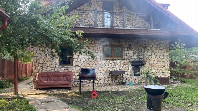 В коттедже есть все необходимое для комфортного проживания. На территории работает Wi-Fi. Рядом с домом обустроена мангальная зона.