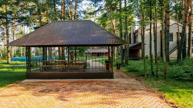 Здесь есть уютные номера и домики, просторные беседки для душевных пикников, русская баня, ресторан, банкетные залы и стильные веранды. Для каждого гостя найдется развлечение по душе.