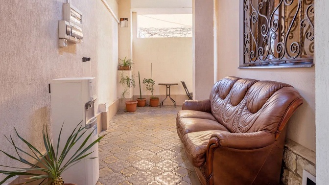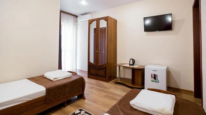 В номерах есть все необходимое для комфортабельного проживания. На этаже также установлен кулер с питьевой водой. Еще в гостевом доме просторный внутренний двор.