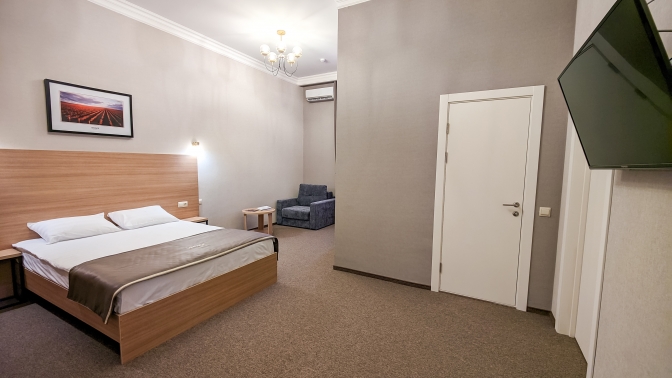 На территории отеля есть SPA-зона с финской сауной, соляной комнатой, массажным кабинетом. Инфраструктура позволяет полноценно отдыхать с детьми. Для размещения предусмотрены уютные номера разных категорий.