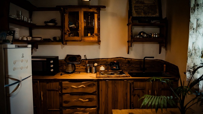 — оборудованная кухня (плита, холодильник, чайник, посуда);