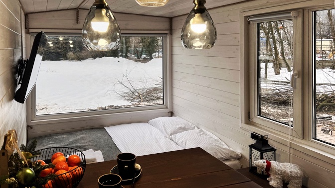 — Скидка 30% на проживание в течение 2 дней/1 ночи в домике в апреле и мае (7000 руб. вместо 10 000 руб.)