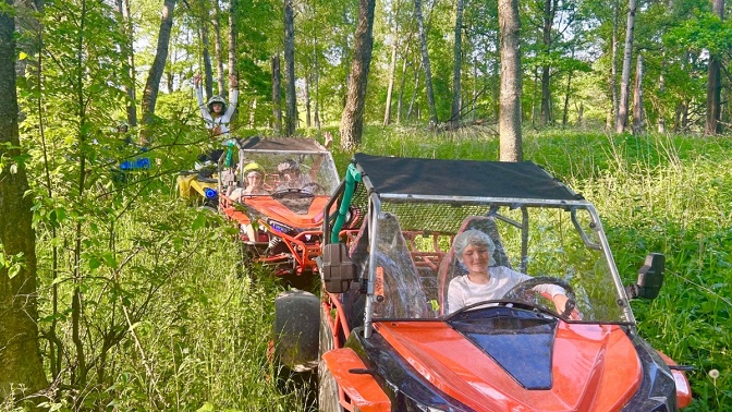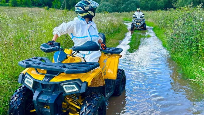 Также есть прокат мотоциклов эндуро. Авторские туры на квадроциклах не оставят никого равнодушным (есть возможность доехать до водопада, покататься по горкам и лесу). Для детей предусмотрена отдельная трасса, также есть батут.