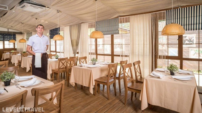 — в основном ресторане Le Dune по системе «все включено» в формате «шведский стол» (режим работы: завтрак: с 07:30 до 10:00, обед: с 12:30 до 15:00, ужин: с 17:30 до 20:00, на обед и ужин предлагается пиво, вино (красное и белое) от кубанских производителей);