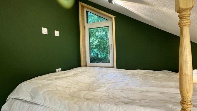 — в доме есть двуспальная кровать на антресоли;