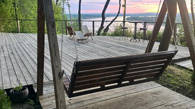 Для любителей отдыха на свежем воздухе предусмотрена индивидуальная зона с мангалом. Отдельного внимания заслуживает смотровая площадка: отсюда открываются впечатляющие панорамы Волги.