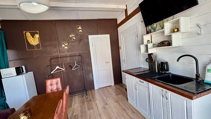 — аренда коттеджа (50 кв. м) со всеми удобствами (2 спальнями, кухней-гостиной с телевизором, холодильником, микроволновой печью, кондиционером);