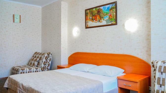 Во всех номерах — удобства, телевизоры и сплит-системы.