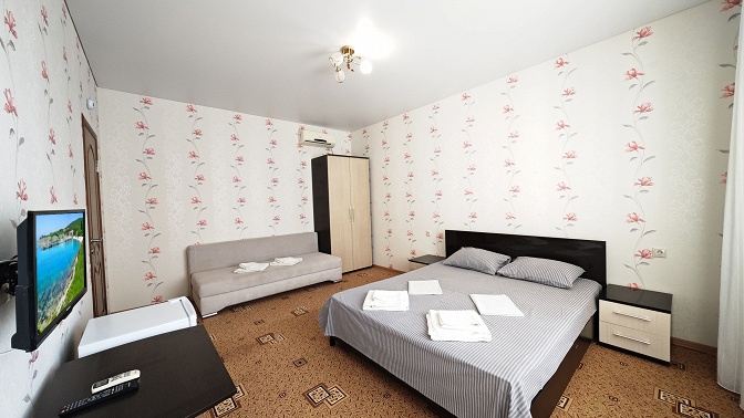 Здесь вас ждут уютные номера со всеми удобствами. А с панорамной крыши открывается потрясающий вид на Геленджикскую бухту. Здесь можно отдыхать и загорать в шезлонгах. Также в вашем распоряжении есть общая кухня и мангальная зона. Рядом с гостевым домом расположены магазины, кафе и столовые. До центра Геленджика можно доехать за 15 минут.
