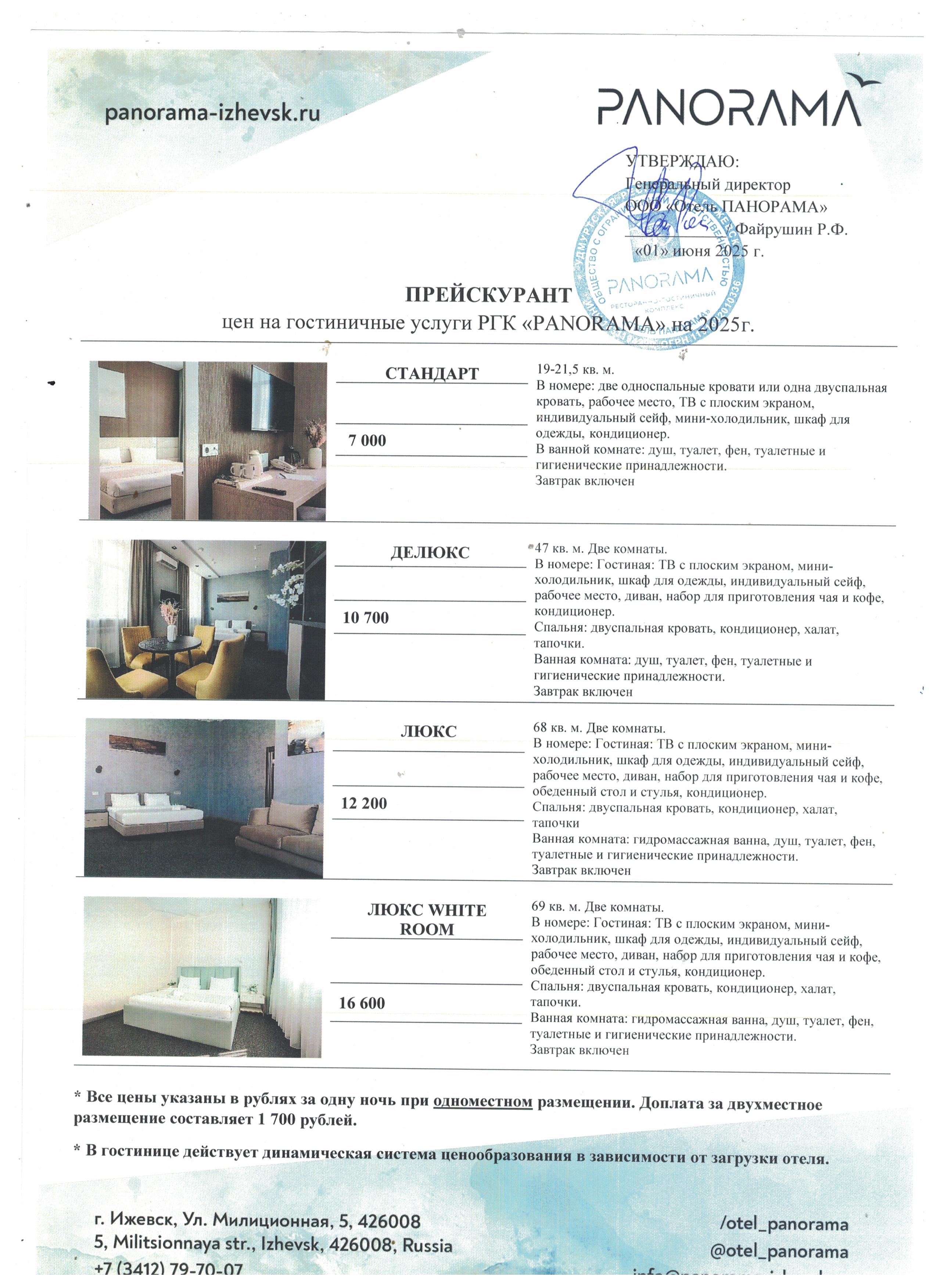 - Ресторанно-гостиничный комплекс Panorama расположен в прогулочной части культурного центра города Ижевска, столицы Удмуртии, на набережной городского пруда. В шаговой доступности находятся многочисленные магазины, торговые центры, рестораны, кафе, кинотеатры, центральная городская площадь, аттракционы, театры, городской парк, пункты проката велосипедов и лодок.