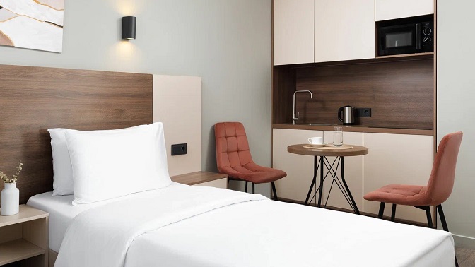 — Скидка 30% на проживание для одного в течение 2 дней/1 ночи в одноместном номере категории студия без питания в любой день (3500 руб. вместо 5000 руб.)