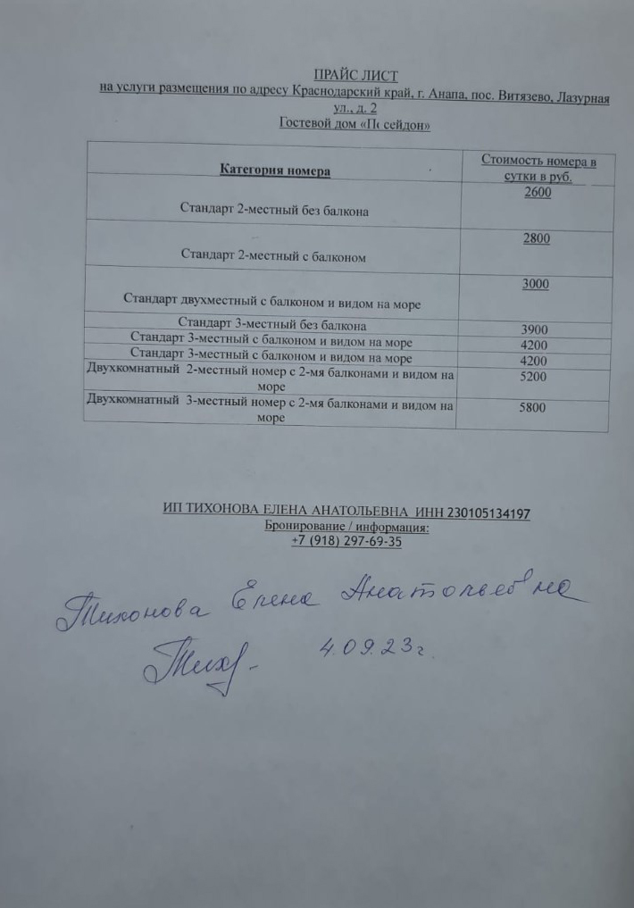 — количество дополнительных мест в каждой меблированной комнате необходимо уточнять по телефону +7 (918) 297-69-35 или электронной почте e-tixonova@mail.ru;