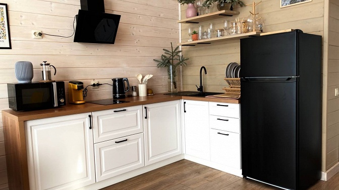 В каждом доме есть холодильник, микроволновая печь, чайник, фен, варочная панель, посуда, телевизор и Wi-Fi. Приятного отдыха!