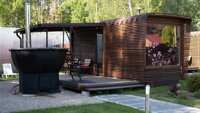 — терраса с удобной мебелью теплыми пледами и горячий чан для релаксации под открытым небом (чан оплачивается отдельно);
