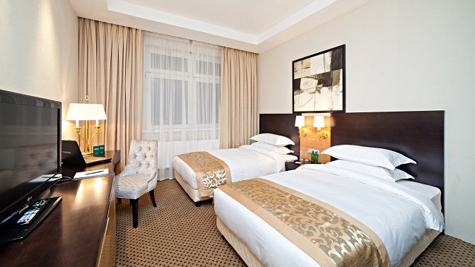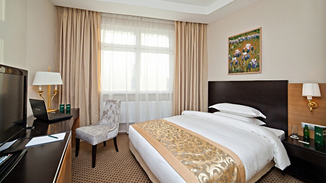 Для проживания гостей подготовлены просторные светлые номера разных категорий комфортности, из окон которых открывается красивый вид. В номерной фонд отеля входит 376 комнат, каждая из которых оснащена кондиционером, рабочим местом, спутниковым телевидением, электронными замками.