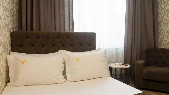 - Отель находится недалеко от станции метро «Алма-Атинская». Рядом со зданием есть парковка.
