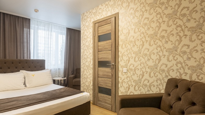 — Скидка 30% на романтический отдых для двоих в течение суток (заезд — с 12:00, выезд — до 12:00, с завтраком) в номере категории комфорт с одной двуспальной кроватью (3549 руб. вместо 5070 руб.)