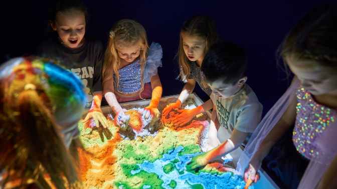 Здесь есть лазерный лабиринт, песочный остров со световыми эффектами и не только. Еще можно с помощью специальных карандашей «оживить» драконов — аналогов этой игры нет ни в одном городе России. Также ребятам наверняка понравится пол с проекцией, которая реагирует на движения и прикосновения.