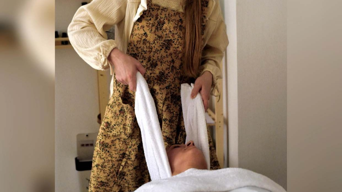 Это похоже на танец с тканью. Раскачивание головы, как в колыбели, снимает груз мыслей. Вибрирующие проходы вдоль позвоночника снимают зажимы. Мягкие скрутки направлены на вытяжение позвоночника. Сеансы могут помочь ощутить эффект релакса: достигается погружение в состояние между сном и явью, где тело вспоминает, как быть свободным.